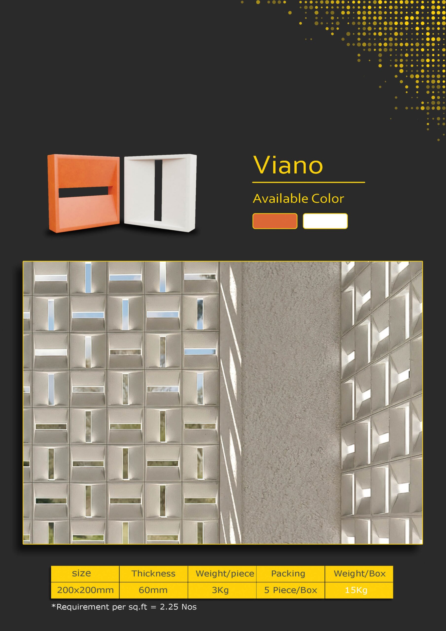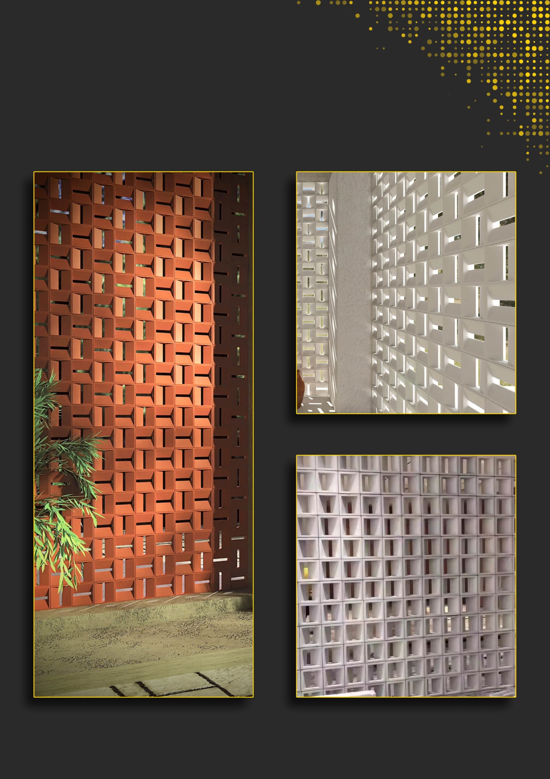 Designed in a 200 × 200 mm modular size, it allows creative patterns while ensuring proper ventilation, filtered light, and visual privacy. The earthy terracotta tone enhances natural and contemporary architecture alike, making it ideal for residential, commercial, and hospitality projects.